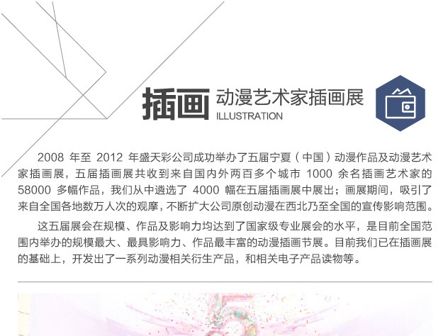由寧夏自治區(qū)黨委宣傳部、寧夏回族自治區(qū)文化廳、銀川經(jīng)濟(jì)技術(shù)開(kāi)發(fā)區(qū)管委會(huì)等單位聯(lián)合主辦,寧夏軟件園管理辦公室、銀川盛天彩文化傳媒有限公司承辦,中國(guó)插畫(huà)網(wǎng)...